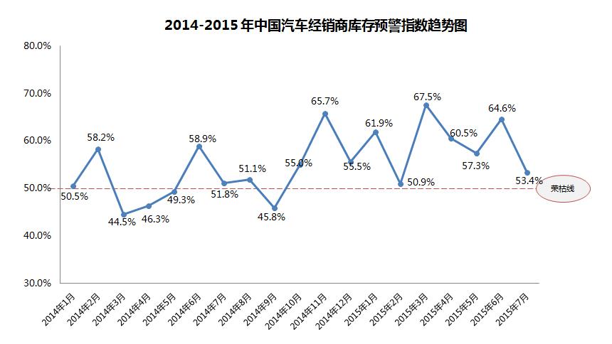 2015年7月份中國汽車經(jīng)銷商庫存預(yù)警指數(shù)為53.4%