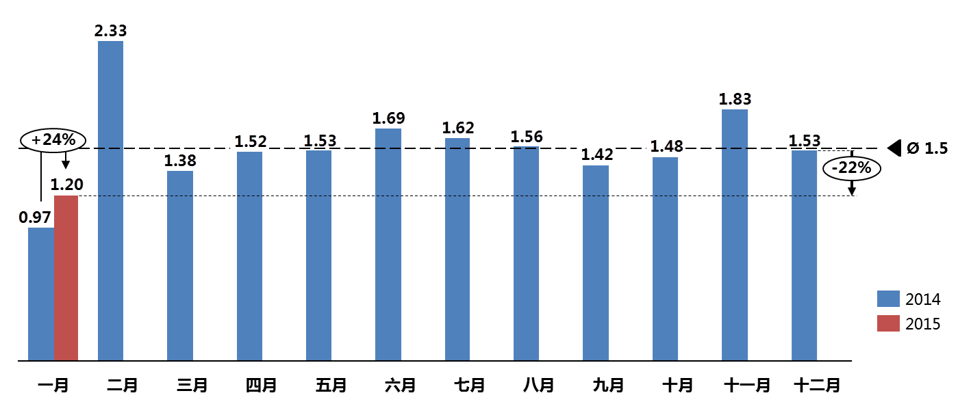 2015年1月份庫存系數(shù)為1.20