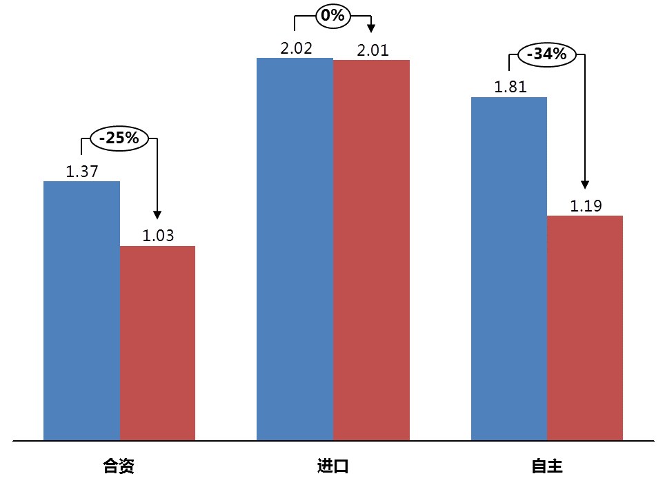 二、除進(jìn)口品牌,合資、自主庫存水平均在合理區(qū)域