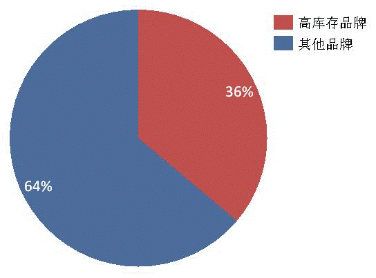 本次抽樣調查涉及品牌為55個,其中庫存系數超過2.5的品牌有17家。其中,捷豹-路虎、日產啟辰、奇瑞、謳歌、上汽榮威成為高庫存前五品牌,相對庫存系數也處于較高水平。本月,高庫存品牌占比為36%,與上月4%相比有大幅度增長,高庫存品牌覆蓋合資、進口、自主品牌,說明本月整體汽車市場較低迷,市場處于調整期。(見圖3)。