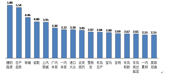2月份高庫存品牌數量明顯增加,共17個品牌,分別是:進口品牌:捷豹-路虎、謳歌、進口大眾、英菲尼迪;合資品牌:廣汽本田、北京現代、雪鐵龍、東風日產、寶馬、東風標致、東風悅達起亞、一汽豐田;自主品牌:日產啟辰、奇瑞、上汽榮威、吉利、一汽夏利。