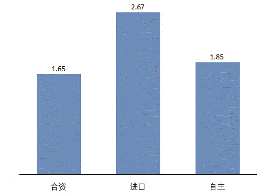 11月份,合資、自主、進口品牌庫存系數均有不同幅度上升,而且都處于警戒線水平以上,合資品牌庫存系數由上月1.42增至1.65;自主品牌庫存系數由上月的1.60增至1.85;進口品牌庫存系數由上月的2.30增至2.67,進口品牌的庫存系數處于高庫存水平。