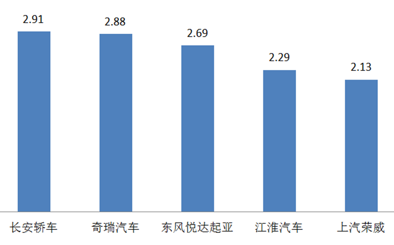 7月,5個品牌庫存深度在兩個月以上,分別是:長安轎車、奇瑞汽車、東風悅達起亞、江淮汽車、上汽榮威。