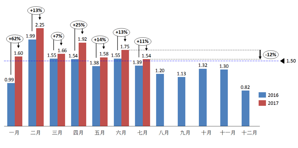 2017年7月汽車經(jīng)銷商庫存系數(shù)為1.54