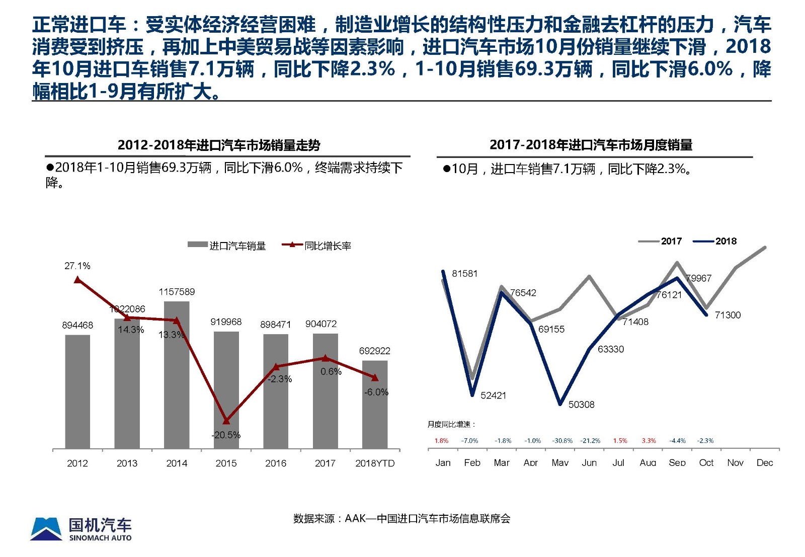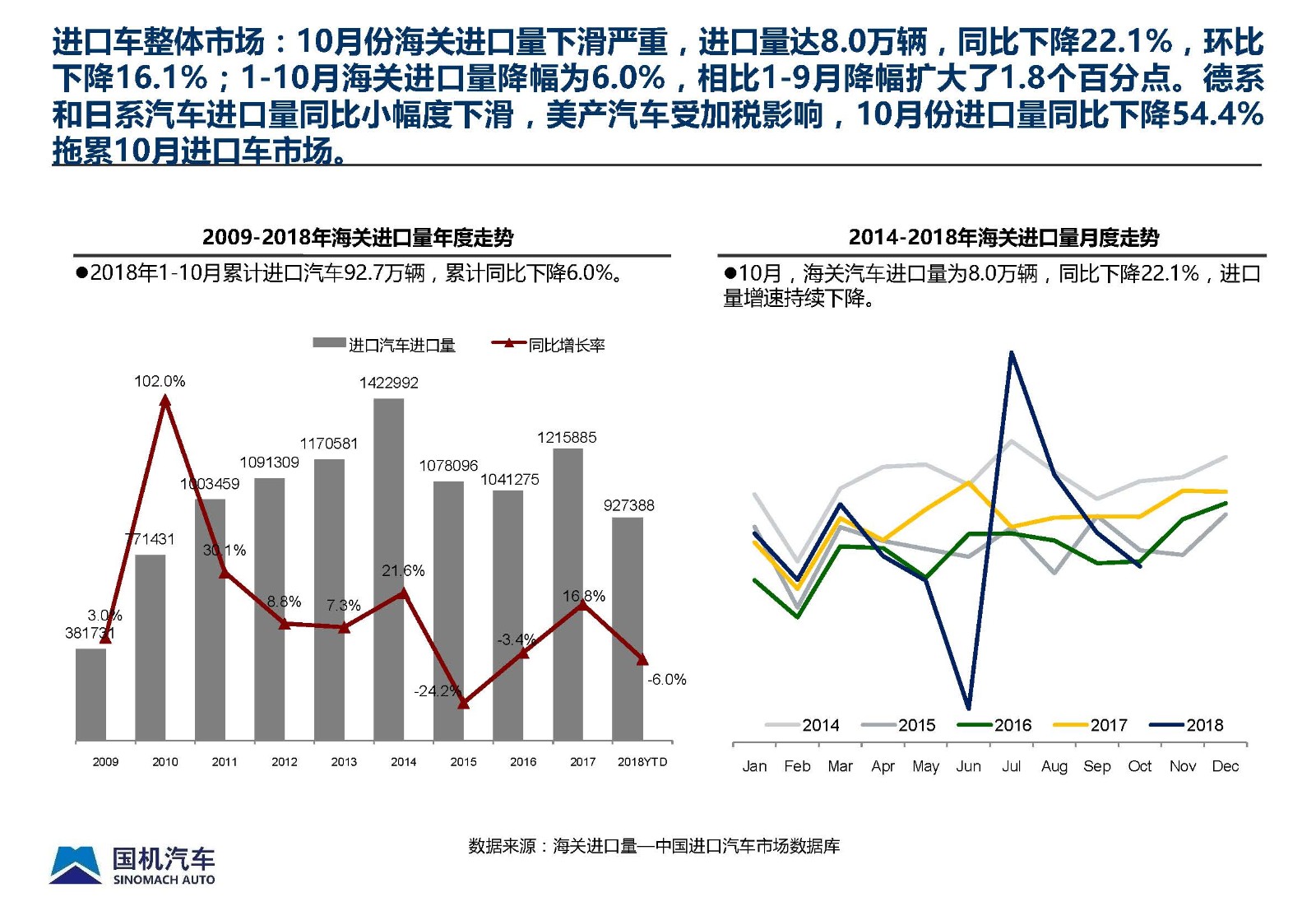 2018年10月中國進口汽車市場情況