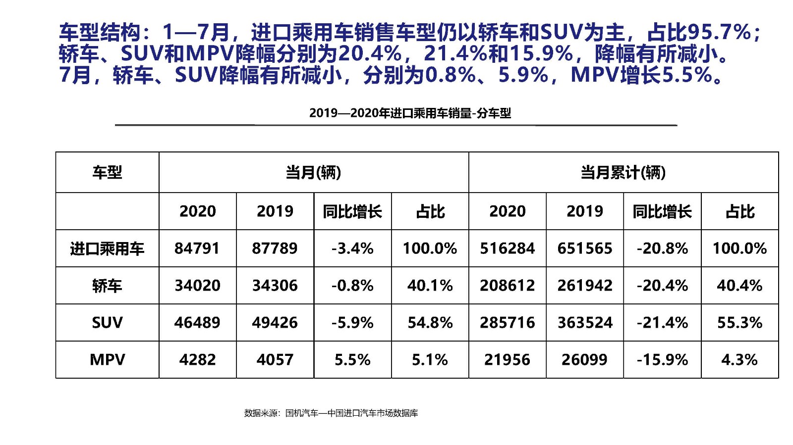 2020年7月中國進口汽車市場情況