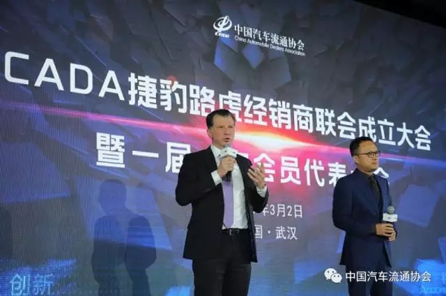 3月2日,CADA捷豹路虎經銷商聯會在武漢成立。中國汽車流通協會會長沈進軍,奇瑞捷豹路虎汽車有限公司董事長陳安寧,捷豹路虎全球董事、捷豹路虎中國總裁潘慶,捷豹路虎中國與奇瑞捷豹路虎聯合市場銷售與服務機構總裁魏傅然(Frank Wittemann),常務副總裁胡俊等領導,以及捷豹路虎全國經銷商出席了成立大會。會議由捷豹路虎經銷商聯會籌委會副秘書長張曉旭主持。