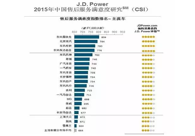 最為明顯的例子是汽車制造商在后市場的服務意識已經開始提升,2015年7月31日,J.D.P0WER亞太公司2015年中國售后服務滿意度研究(CSI)正式發(fā)布,我們看到多家汽車制造商的分數都有所提升,這是中國售后服務滿意度研究(CSI)第15個年頭,這項研究評測擁車期為12-36個月的車主在過去6個月對于授權經銷商服務部門維修或保養(yǎng)服務的滿意度,這個擁車時間段通常是車輛保修期的重要組成部分,這項研究通過五個衡量因子確定總體售后服務滿意度。五個因子(按重要性排序)包括“服務質量”(22%)、“服務后交車”(20%)、“經銷商設施”(20%) 、“服務顧問”(19%)和“服務啟動”(19%)。客戶滿意度得分(1,000分制)衡量授權經銷商在滿足客戶對于售后服務體驗的期望方面的表現。