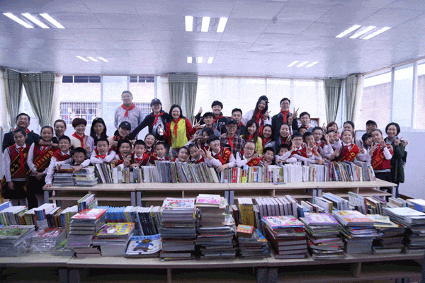 成都愛悅隨行公社與孩子們在“愛悅書屋”合影