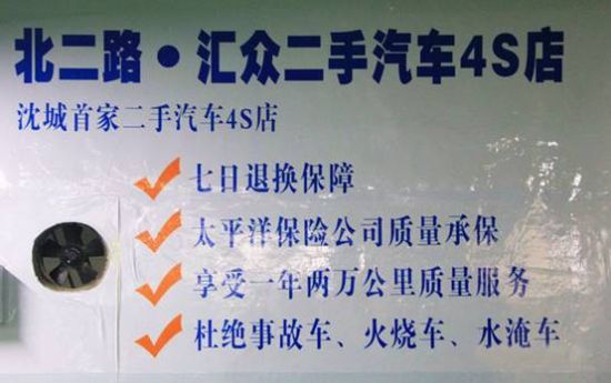 作為沈陽市內最大的品牌二手車營銷中心,匯眾二手車位于北二路北京現代旗艦級5S店5層。全店擁有4000平米室內二手車展廳,每月累計有百余輛二手車進場展示交易。匯眾二手車對銷售的每輛認證二手車,提供7天退貨擔保承諾。同時杜絕事故、泡水、火燒車買賣,在匯眾交易二手車更可尊享沈城獨家保險公司質保服務,沈城獨一無二。在車源上,展廳內以3-12萬元區間中低端車型為主,日韓系車居多,德系、歐系品質上更好。熱銷款車型如:騏達、索納塔、凱越、科魯茲、天籟等車型普遍受商戶和客戶喜愛。