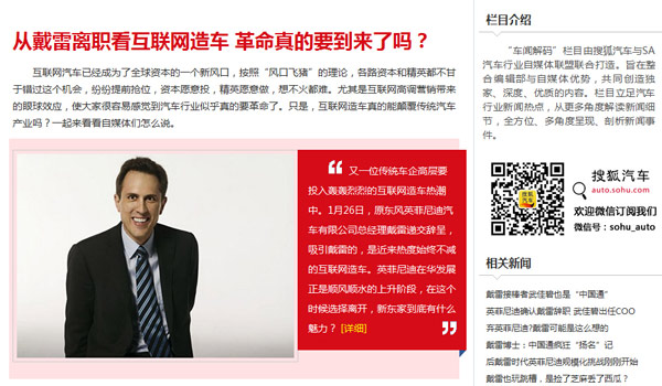 “車聞解碼”欄目立足于汽車行業(yè)新聞熱點(diǎn),由搜狐汽車與SA自媒體聯(lián)盟共同策劃選題,采用“編輯部+自媒體”的形式進(jìn)行內(nèi)容生產(chǎn),力求從更多角度解讀新聞細(xì)節(jié),全方位、多角度呈現(xiàn)、剖析新聞事件。今后,“車聞解碼”將作為雙方合作的常規(guī)欄目,定期與廣大用戶見面。
