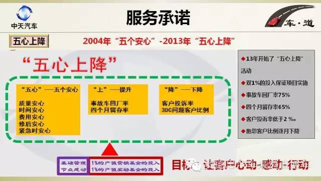 【導讀】1月29日, “2015年提升汽車售后服務質量專項活動”總結會在北京召開。會議由質檢總局質量管理司指導,中國汽車流通協會和中國標準化研究院主辦。常州中天汽車有限公司服務總監戴偉忠在會議上介紹了常州中天服務經驗。