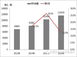 圖一:2012-2015年永達汽車乘用車銷量及增長率