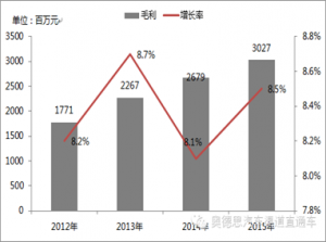 2015年,永達汽車毛利為30.27億元,同比增長13.0%,毛利率由8.1%提升至8.5%。在新車銷售方面,毛利為9.54億元,同比增長0.7%,新車銷售毛利率由2014年的3.24%降至3.06%;在售后服務方面,毛利為188.39億元,同比增長16.3%,毛利率為45.56%,與去年基本持平;汽車經營租賃方面,毛利為1.09億元,同比增長45.2%,毛利率為32.85%;在融資租賃方面,毛利為0.91億元,同比增長140.5%,毛利率為71.60%。