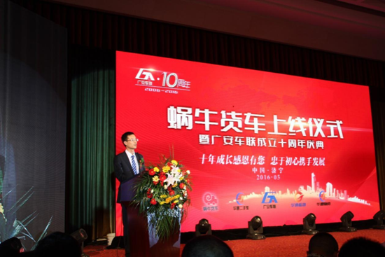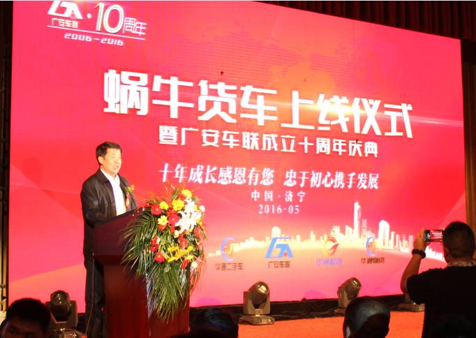 2016年5月8日,天朗氣清,惠風(fēng)和暢,蝸牛貨車(chē)上線儀式暨廣安車(chē)聯(lián)成立十周年慶典在圣都國(guó)際會(huì)議中心三樓宴會(huì)廳隆重舉行。山東廣安車(chē)聯(lián)科技股份有限公司是中國(guó)汽車(chē)流通協(xié)會(huì)會(huì)員單位山東華通二手車(chē)信息技術(shù)有限公司全資子公司,中國(guó)汽車(chē)流通協(xié)會(huì)二手車(chē)專(zhuān)委會(huì)副主任謝燕鳴先生受邀出席慶典。