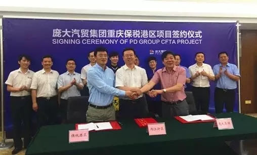 6月7日上午,龐大汽貿集團重慶保稅港區項目簽約儀式在重慶市兩江新區管委會金山大廈隆重舉行。