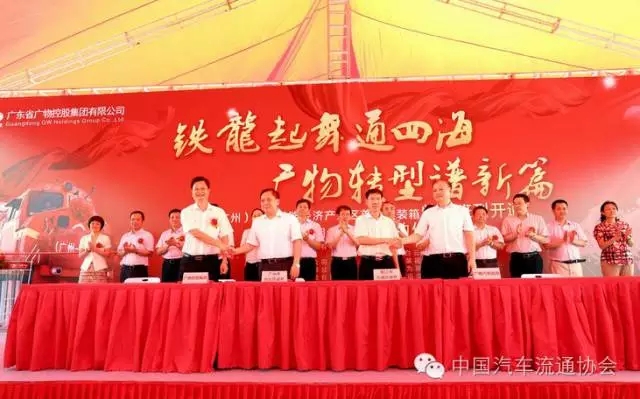 2016年7月20日,中國(guó)廣州—7月19日上午,廣東(廣州)國(guó)際鐵路經(jīng)濟(jì)產(chǎn)業(yè)區(qū)首列集裝箱特需班列開通暨廣物控股集團(tuán)合作項(xiàng)目簽約儀式在廣物汽貿(mào)母集團(tuán)廣物控股白云倉(cāng)成功舉辦。此次活動(dòng)是廣東省積極響應(yīng)黨和國(guó)家“一帶一路”發(fā)展戰(zhàn)略號(hào)召,同時(shí)也是廣物控股、廣物汽貿(mào)創(chuàng)新改革的重要標(biāo)志。省政府及省發(fā)展改革委、省經(jīng)濟(jì)和信息化委、省商務(wù)廳、省國(guó)資委、省工商局,廣州市及廣州市白云區(qū)、陽(yáng)江市江城區(qū)政府有關(guān)領(lǐng)導(dǎo),廣鐵集團(tuán)、廣東華為現(xiàn)代物流有限公司、廣州大順發(fā)國(guó)際物流有限公司、廣東粵運(yùn)朗日股份有限公司、佛山市路之友機(jī)械制造有限公司等合作單位相關(guān)領(lǐng)導(dǎo)和各界嘉賓共150多人出席了儀式。