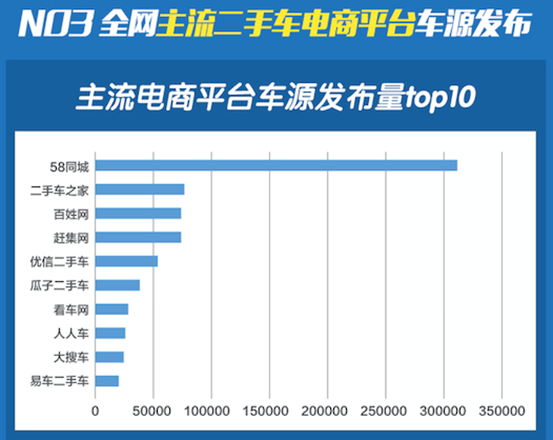 公平價(jià)抓取全網(wǎng)33個(gè)二手車電商平臺(tái)車源信息,其中10月份車源發(fā)布量top10中前4位被生活服務(wù)平臺(tái)和媒體包攬,后6位為二手車平臺(tái)。可以看出生活服務(wù)平臺(tái)的影響力之大,平臺(tái)自身流量不可小視。二手車平臺(tái)車源爭奪之非常激烈。